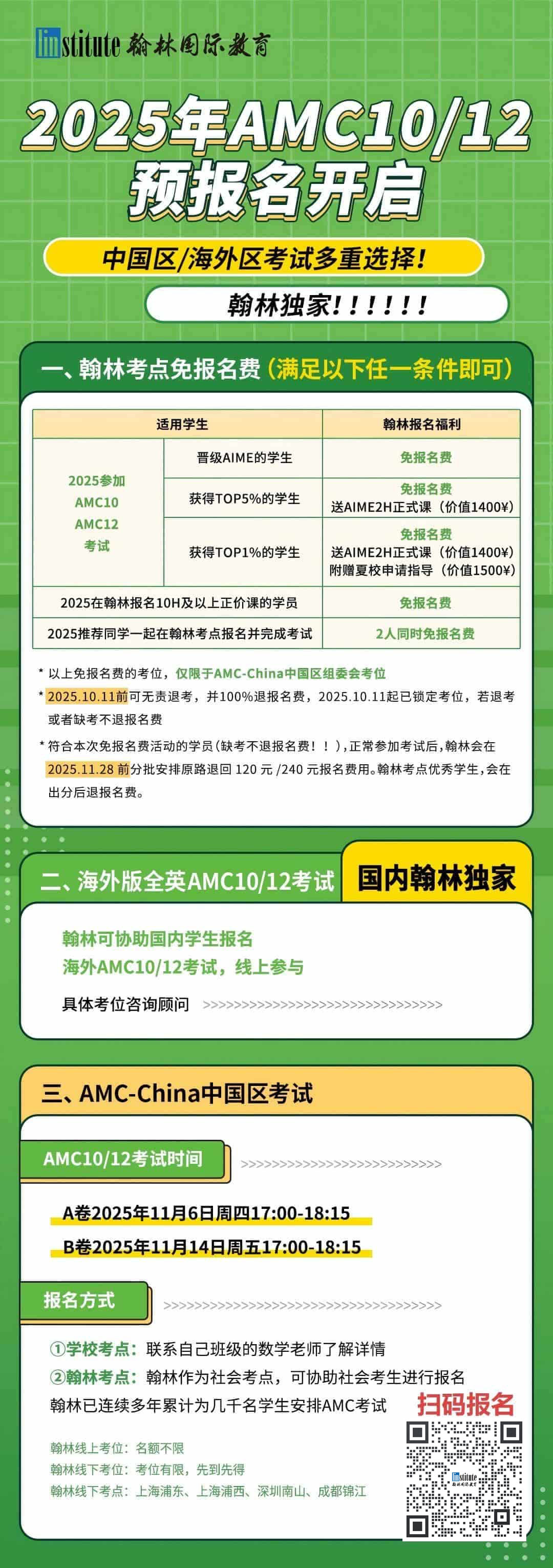 翰林国际教育为AMC组委会官方授权考点,提供AMC数学思维活动在线及线下考试。