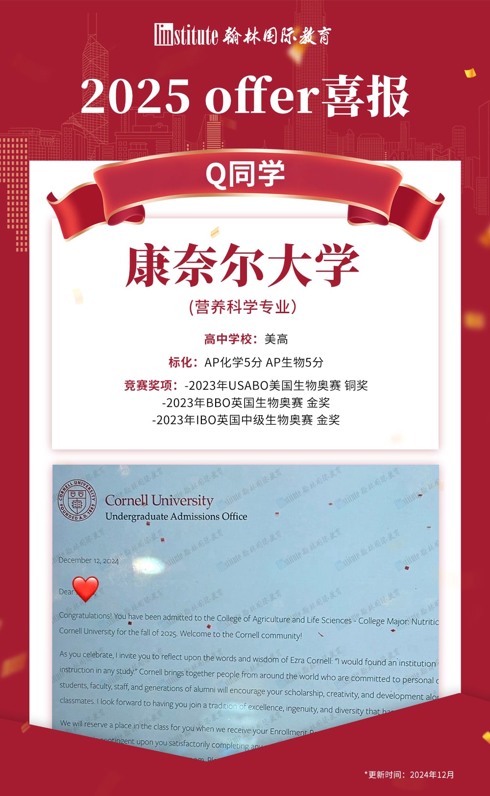 【以下仅展示部分】2025Fall 美本早申收官! 恭喜翰林有方学员斩获名校offer!哈佛+1,耶鲁+1,斯坦福+1,麻省理工+2,加州理工+1,布朗大学+1,康奈尔大学+8,宾夕法尼亚大学+4,西北大学+3,芝加哥大学+2(ED0 录取),哥伦比亚大学+1,约翰霍普金斯大学+1,纽约大学+2(其中1个录取Stern),莱斯大学+1,杜克大学+1,圣路易斯华盛顿大学+3,卡内基梅隆大学+1……(统计截至12.24下午)