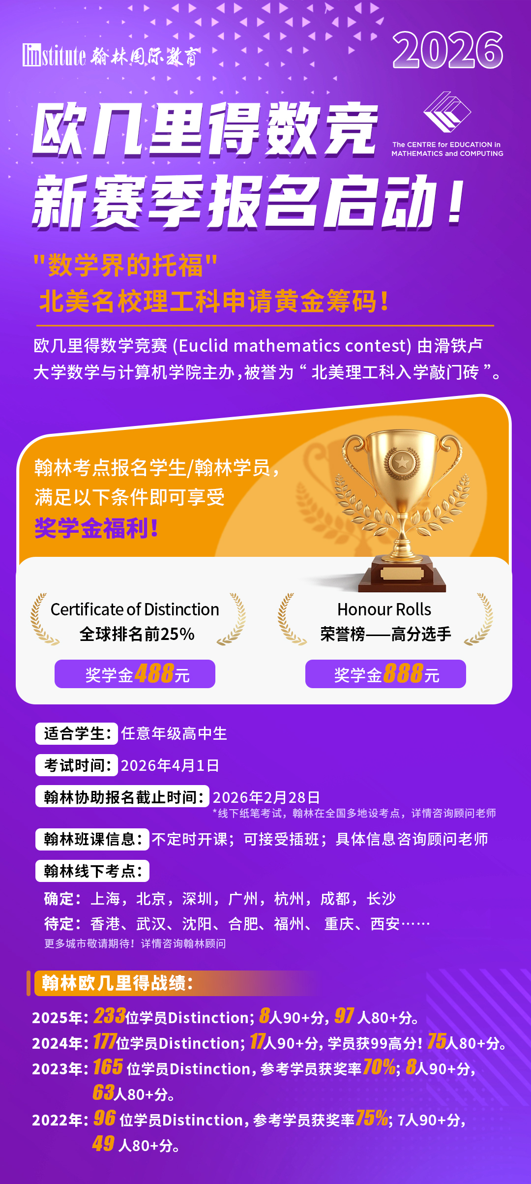 加拿大滑铁卢大学举办,面向全球高中生的数学学术活动,针对12年级(高三)的学生!