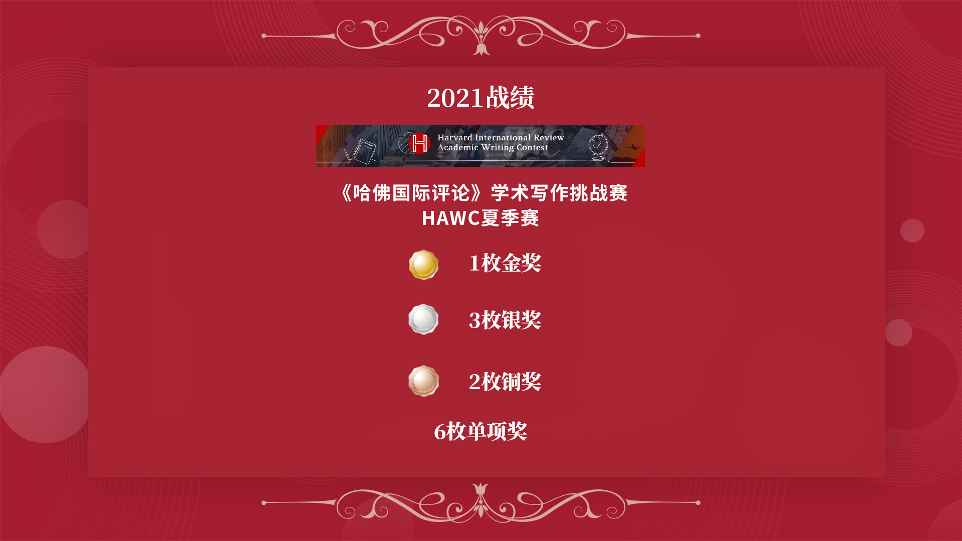翰林学员一直以来在各类学术活动、文化活动和社会公益等方面取得了众多荣誉。在过去的几年中,翰林学员在全国英语学术活动、数学学术活动赛、科技创新大赛等领域中屡获佳绩,在全球各地的模拟联合国、演讲比赛等国际活动中也表现出色。同时,翰林学员积极参与各种公益活动,为社会做出了积极贡献。这些荣誉记录展示了翰林学员不断追求卓越、勇攀高峰的精神,也体现了翰林教育在培养学生综合素质和社会责任感方面的成功实践。