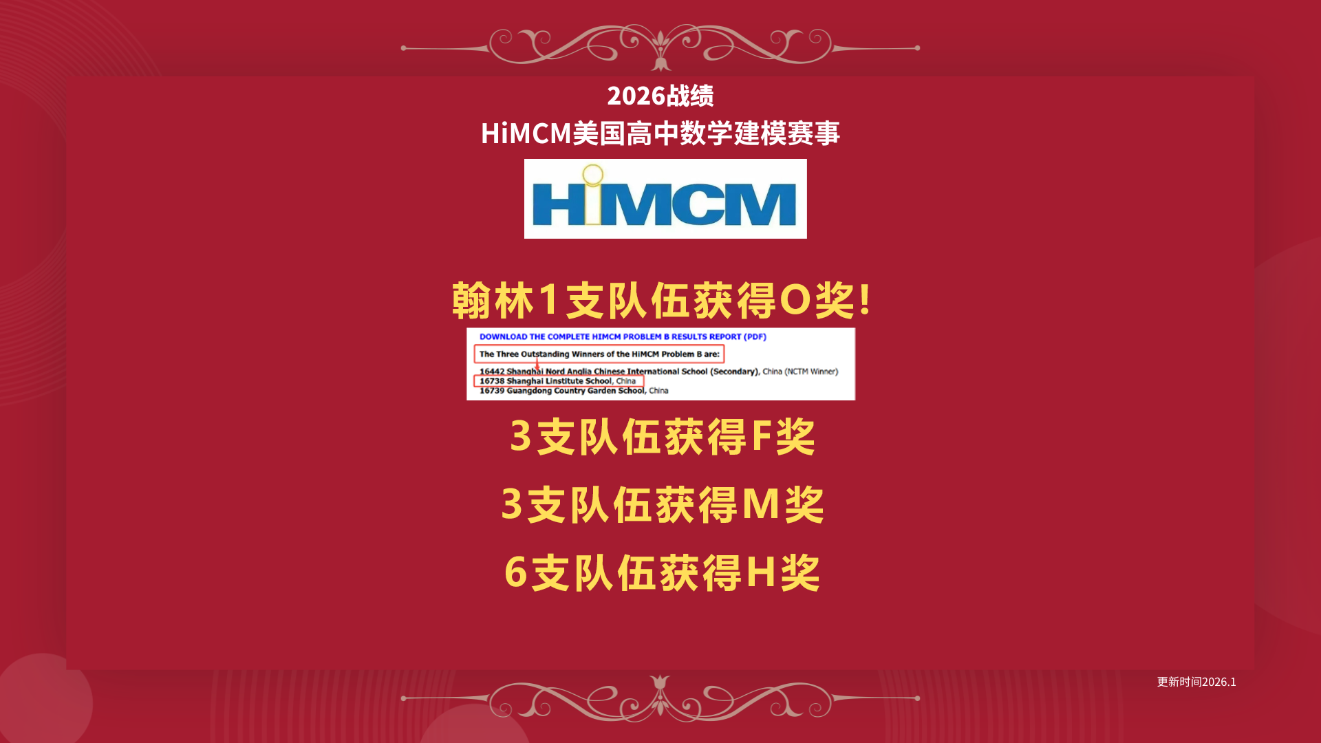 2026赛季HiMCM美国建模赛事战绩