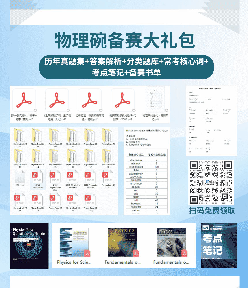 由于目前市面上没有专门针对Physics Bowl的讲义,导致很多同学在备赛方面"举步维艰"。