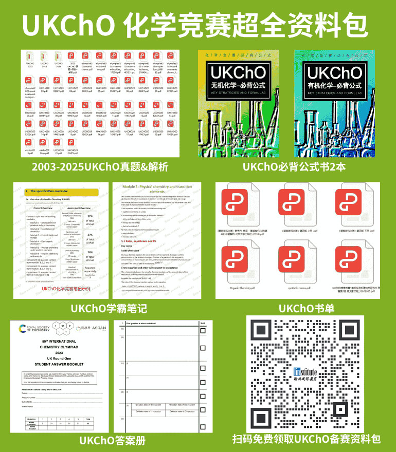 UKCho的目标是英国化学国家队选拔,难度较大。竞赛试题具有一定广度和深度,题型设计紧密结合现实生活、科研和热点,大多以顶级化学期刊上的原创论文为背景。学生需要具备较好的AP、A-level化学基础,而且还要准备好课程以外的拓展延伸。